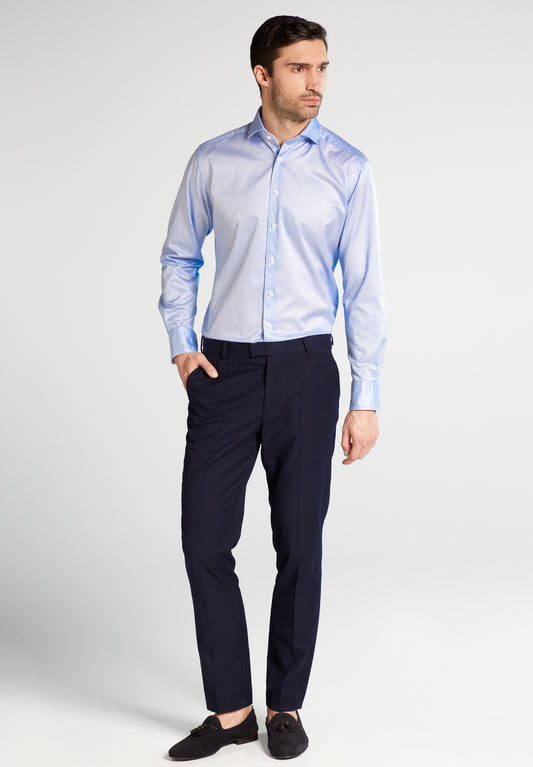 1863 BY ETERNA LANGARM HEMD SLIM FIT SOFT TAILORING STREIFEN TWILL WEISS/BLAU