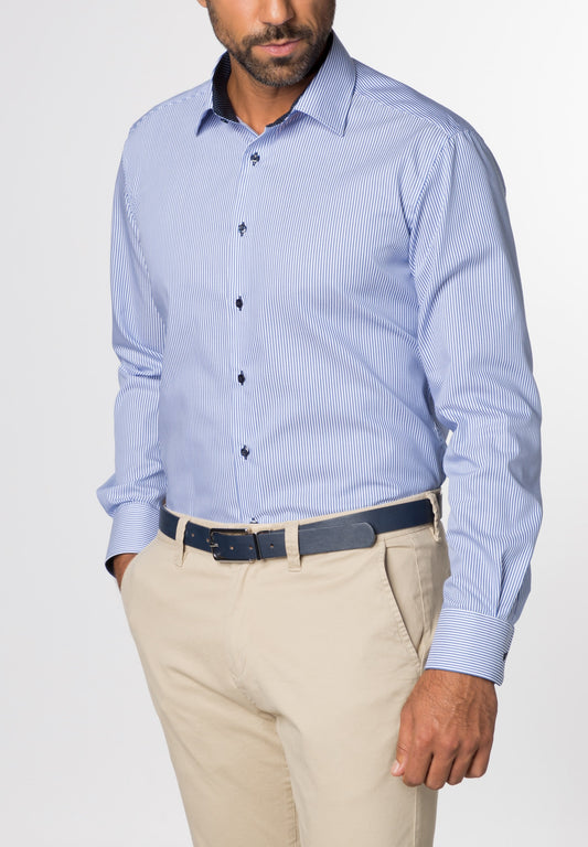 ETERNA LANGARM HEMD MODERN FIT STREIFEN TWILL BLAU/WEISS