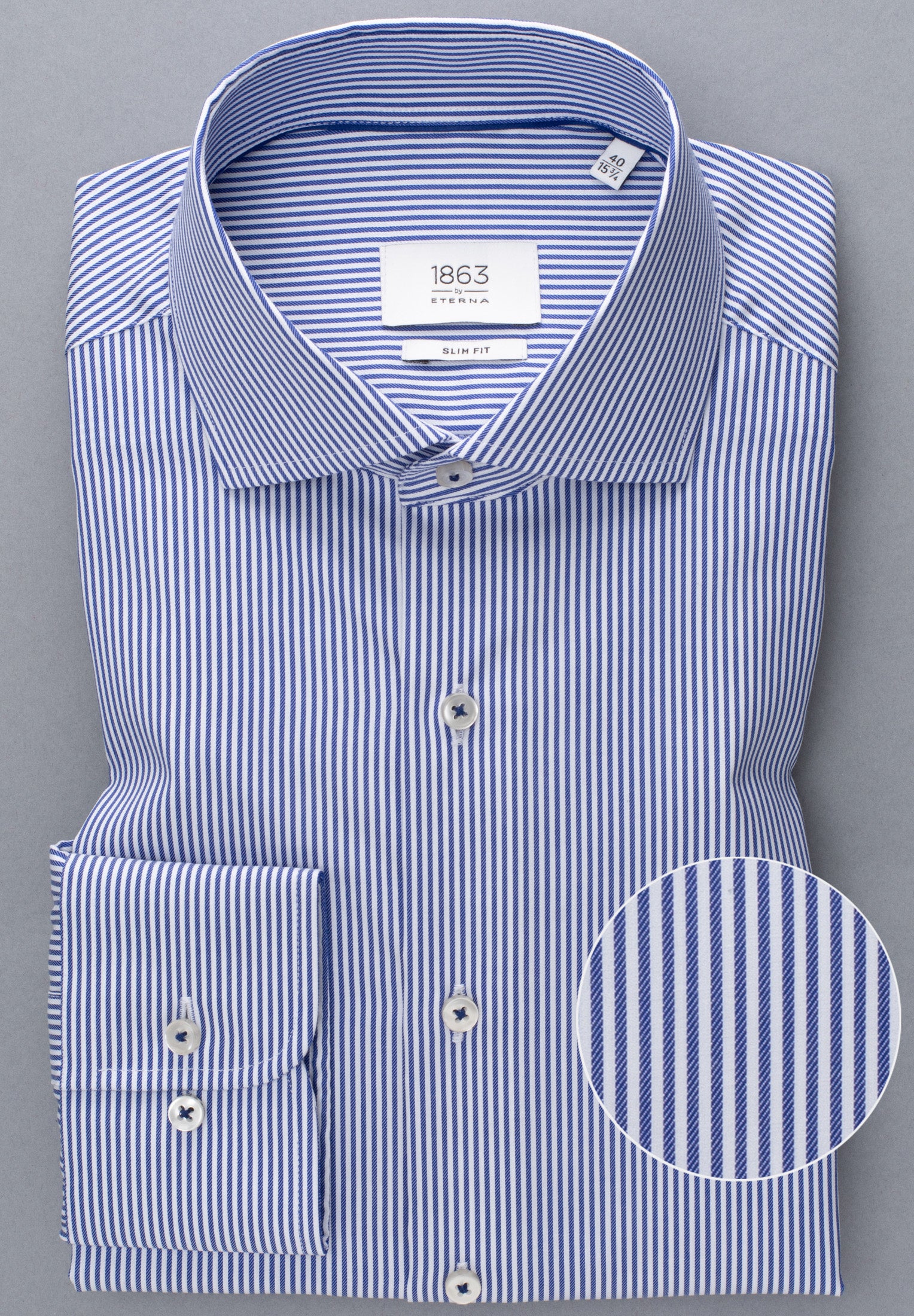 ETERNA LANGARM HEMD SLIM FIT STREIFEN TWILL BLAU/WEISS