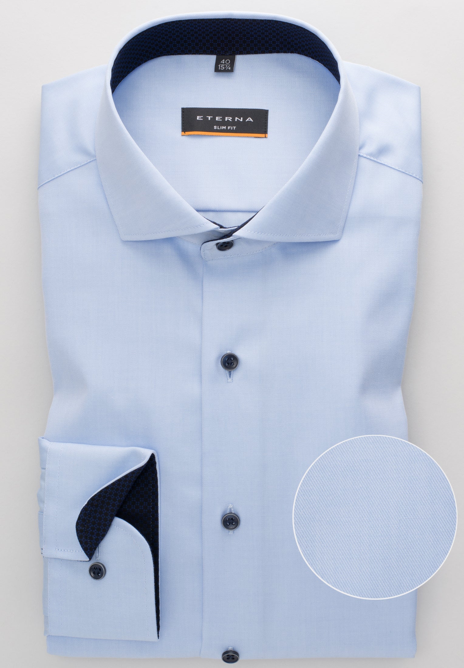 ETERNA LANGARM HEMD SLIM FIT COVER SHIRT BLAU MIT PATCHUNG